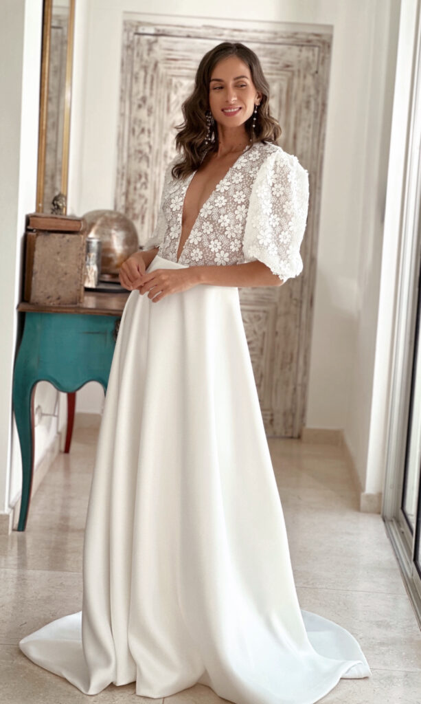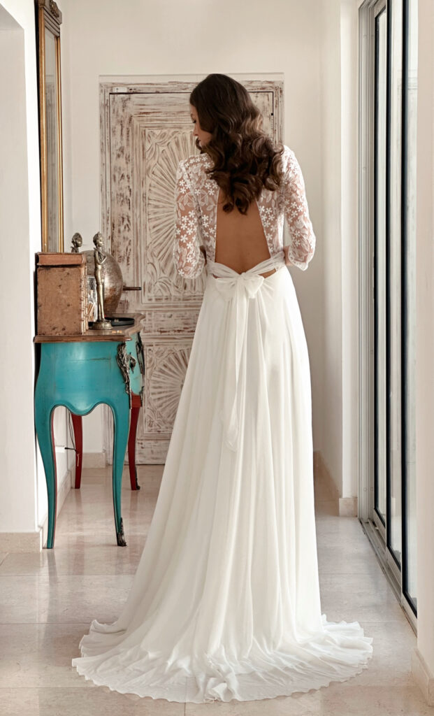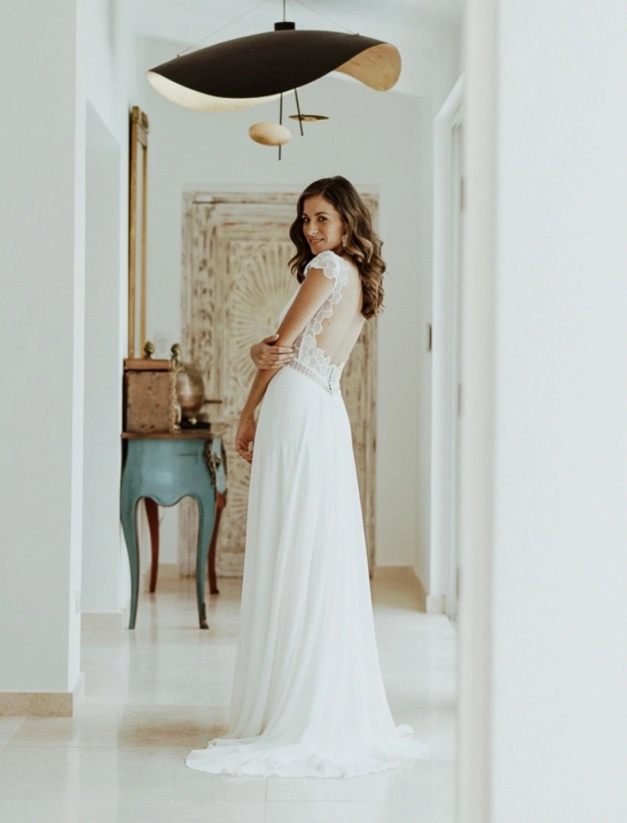 Elle y créée des robes qui sont faites sur-mesure et qui conjuguent l’intemporel et le glamour ! On y retrouve principalement des lignes épurées, fluides et élégantes.