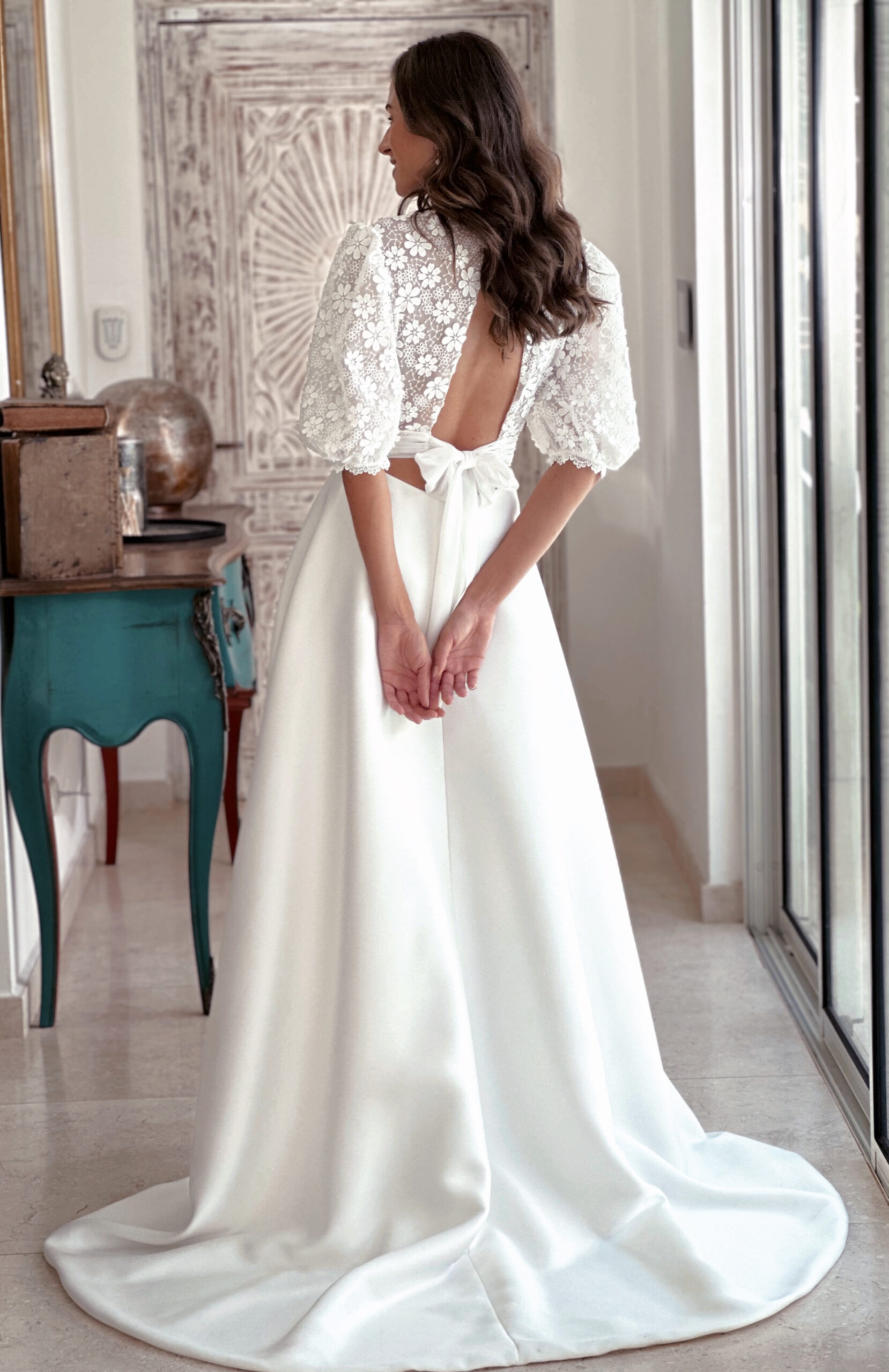 Née en 2008, la maison Fabienne Alagama s’est imposée rapidement dans l’univers du mariage grâce à l’originalité de ses créations.